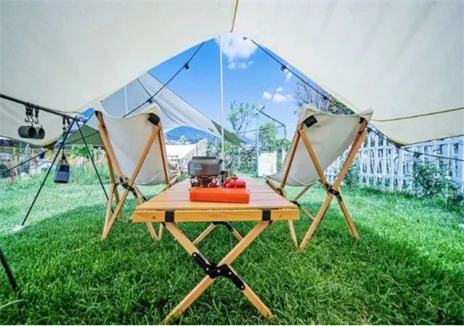 米倉花園承載著園主的詩和遠(yuǎn)方,這里種滿了綠植和鮮花,漫步在花園里,如同漫游在愛麗絲仙境一般。露營(yíng)地便設(shè)在花園的最里邊,11頂戶外帳篷原地搭起。每間帳篷就是一個(gè)小型的家,配備桌椅、烤火器、燒烤器等。帳篷間還有白色柵欄隔開,給足客人安全感??晒┞稜I(yíng)的草坪很大,若遇到團(tuán)建,可搭20頂左右的戶外帳篷,還可以在這里瓜果采摘,品一品下午茶。